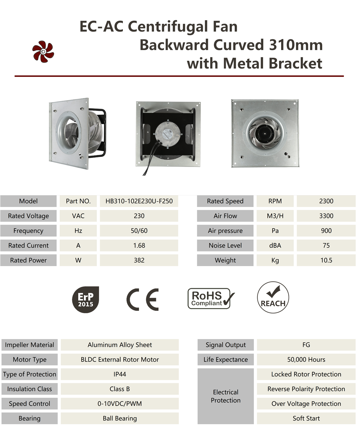 Modèle de ventilateur : HB310-102E230U-F250