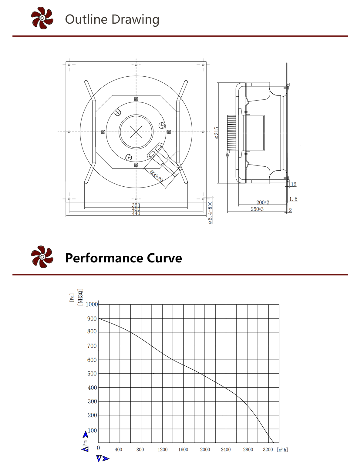 Modèle de ventilateur | HB310-102E230U-F250 |